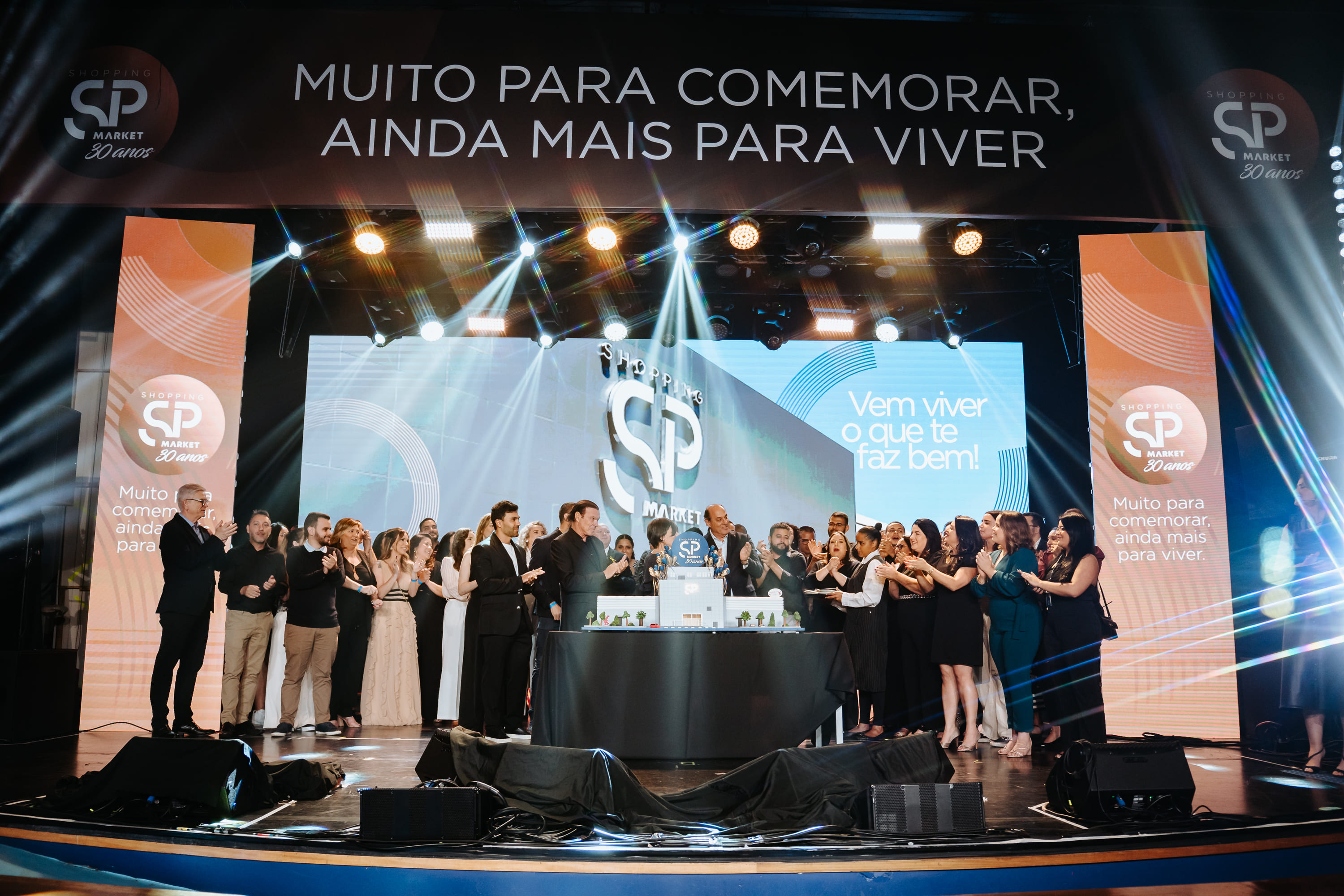 Lojistas, colaboradores e clientes foram convidados a comemorar a data e presenteados com bolos e brigadeiros. A celebração final contou com um lindo e impactante evento e a revelação de duas grandes novidades: um novo investimento imobiliário com a expansão de 163 mil m² e a nova casa de shows. Tudo isso com um show de luzes em LED e, no momento mais emocionante, um espetáculo de fogos de artifício. A IA reviveu o fundador em uma homenagem inédita. A celebração terminou com o show exclusivo da banda Ira, embalando o público em emoção e pertencimento.