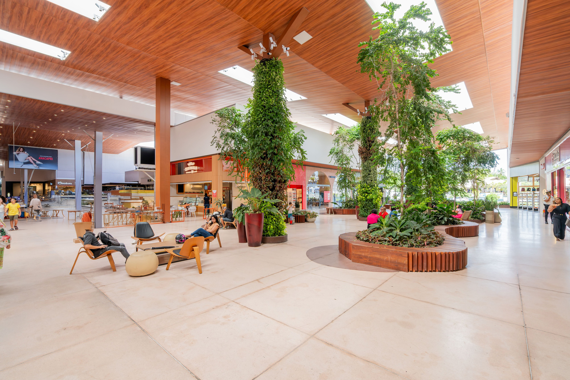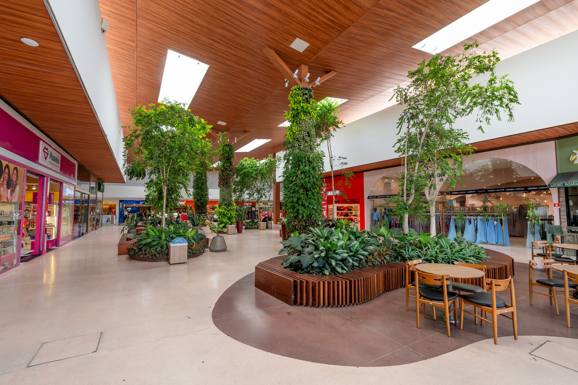 Com investimento de R$ 15 milhões, o projeto ampliou a ABL de 25 para 26 mil m², agregando marcas de peso como Havaianas, San Paolo, Avatim e Mosele. O diferencial está na experiência: um passeio ao ar livre, arborizado, com mais de 20 espécies vegetais, jardins verticais, forro em madeira e iluminação natural, tudo pensado para proporcionar aconchego, beleza e sustentabilidade. Resultado? Um novo polo de convivência, lazer e consumo, que fortalece o comércio local e gera impacto direto na economia do Eusébio.
