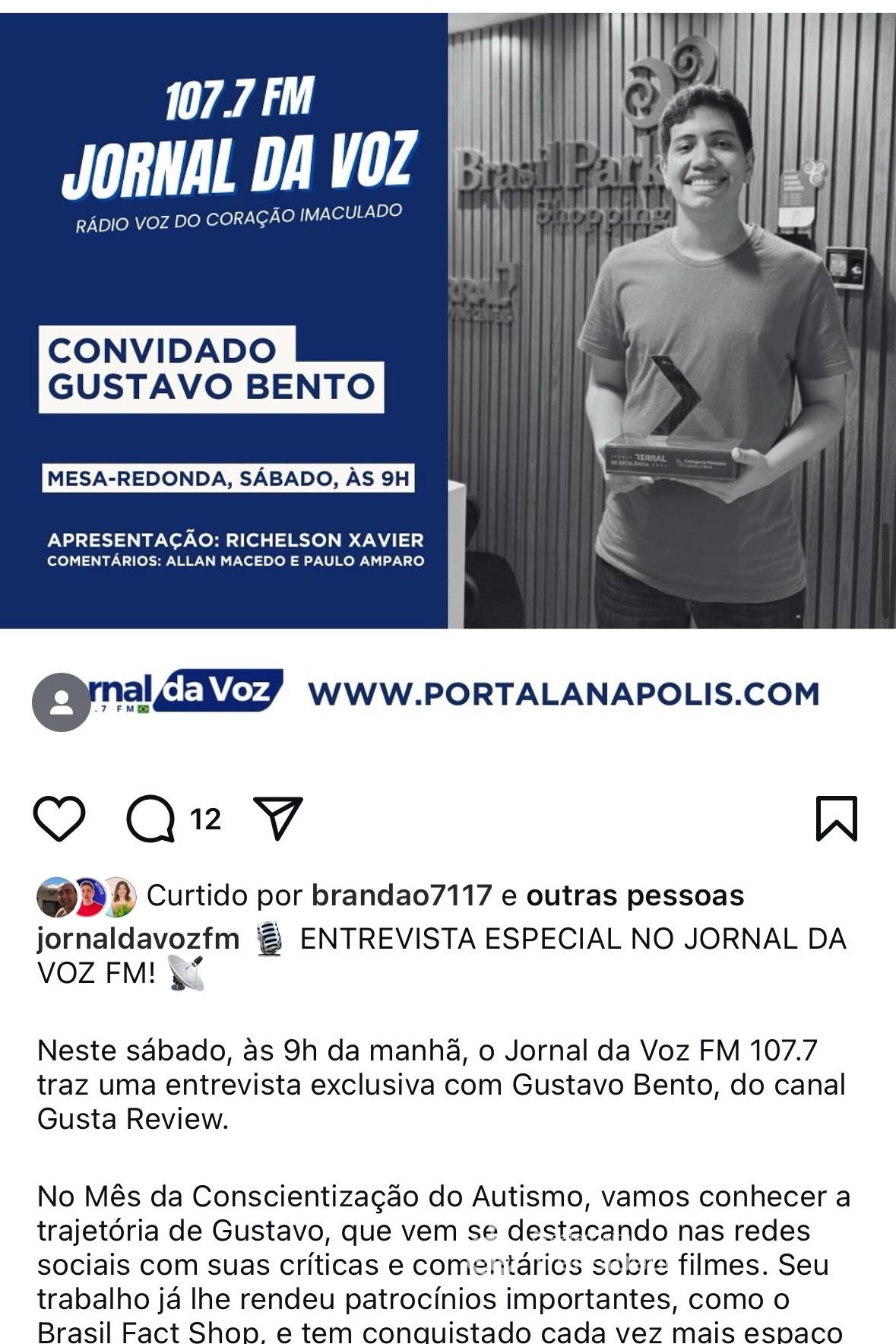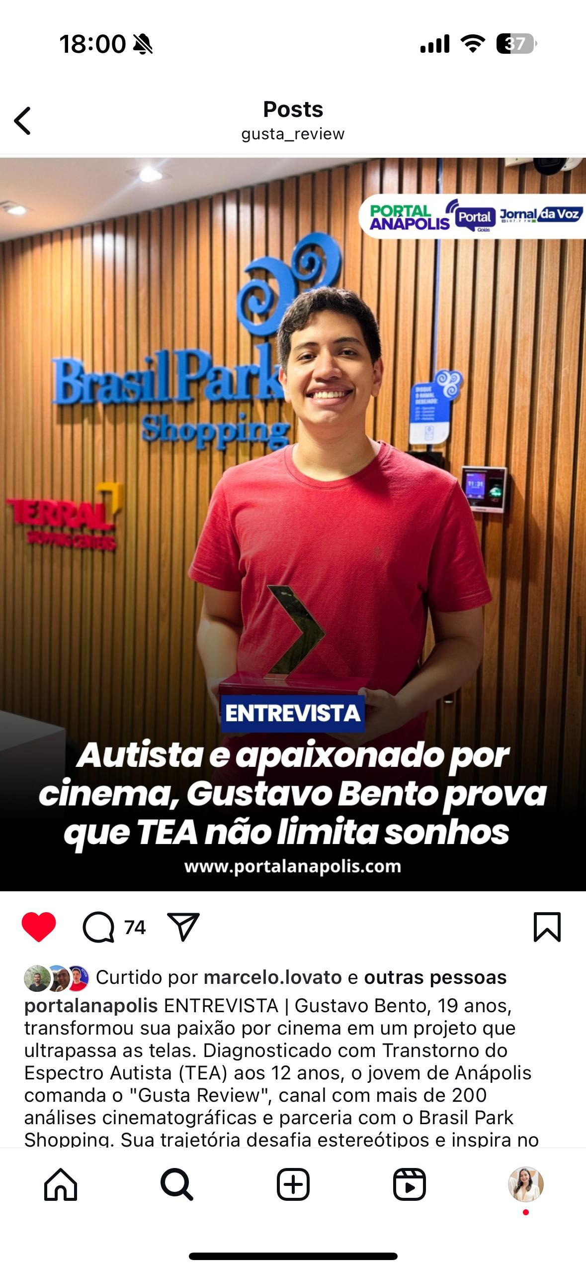 O Brasil Park Shopping deu vida a um projeto inovador e inclusivo ao transformar a paixão de um jovem autista por cinema em uma parceria inspiradora. Em 2024, o Gustavo encontrou no shopping não apenas um espaço para sua voz, mas uma oportunidade de se tornar o influenciador oficial do Brasil Park Shopping. Com sua autenticidade e hiperfoco em cinema, ele produziu seu primeiro vídeo sobre o lançamento de DivertidaMente 2, que alcançou um bom engajamento e foi amplamente celebrado nas redes sociais.