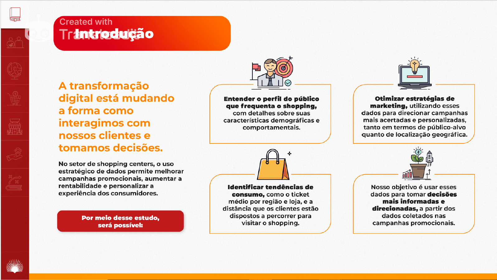 Diante da crescente importância da inteligência de dados no varejo, o Buriti Shopping estruturou um projeto para transformar dados dispersos em decisões estratégicas. Unificamos informações captadas em diferentes pontos de contato (estacionamento, wi-fi, promoções, etc.) em um data warehouse, com rotina de saneamento e padronização. A partir daí, criamos o Book de Inteligência de Dados com análises de perfil, consumo e comportamento dos clientes, servindo de base para estratégias segmentadas.