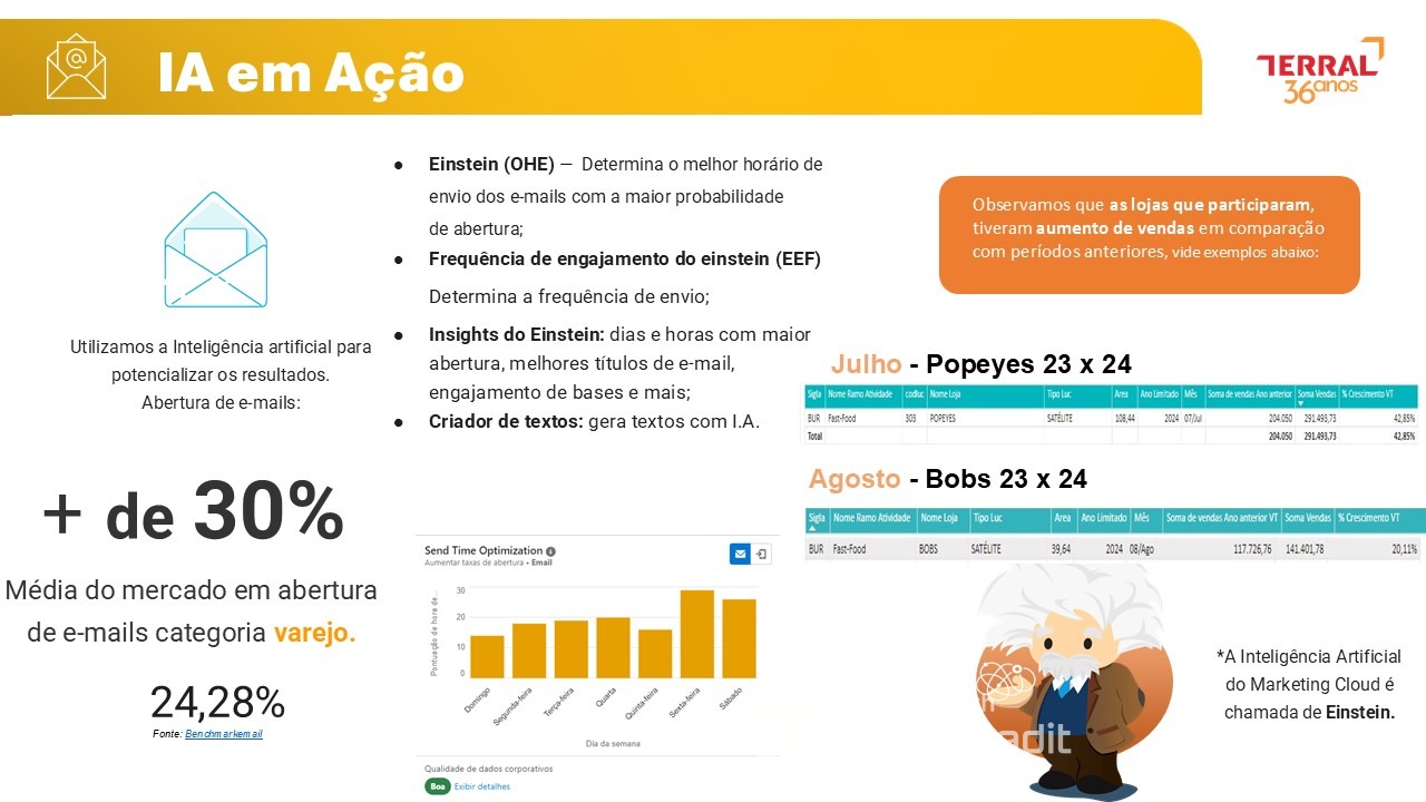 A contratação da plataforma Marketing Cloud da Salesforce permitiu integrar canais digitais e criar jornadas automatizadas e personalizadas, otimizando a comunicação com os clientes. A ação resultou em mais de 4.400 visitas físicas geradas exclusivamente pelas campanhas online, aumento de até 43% nas vendas de lojistas parceiros e taxas de abertura de e-mail acima de 30%. O projeto conectou dados, tecnologia e marketing com foco em gerar valor real para o shopping e seus lojistas.