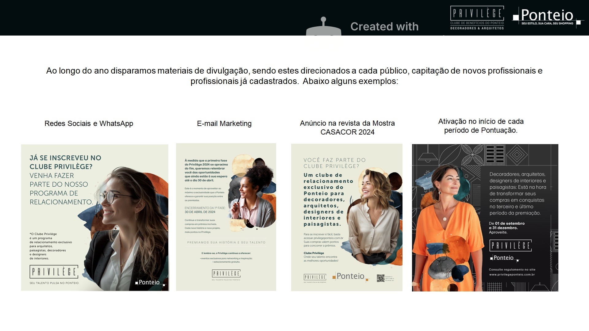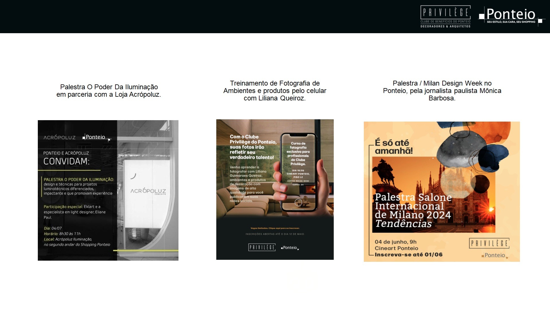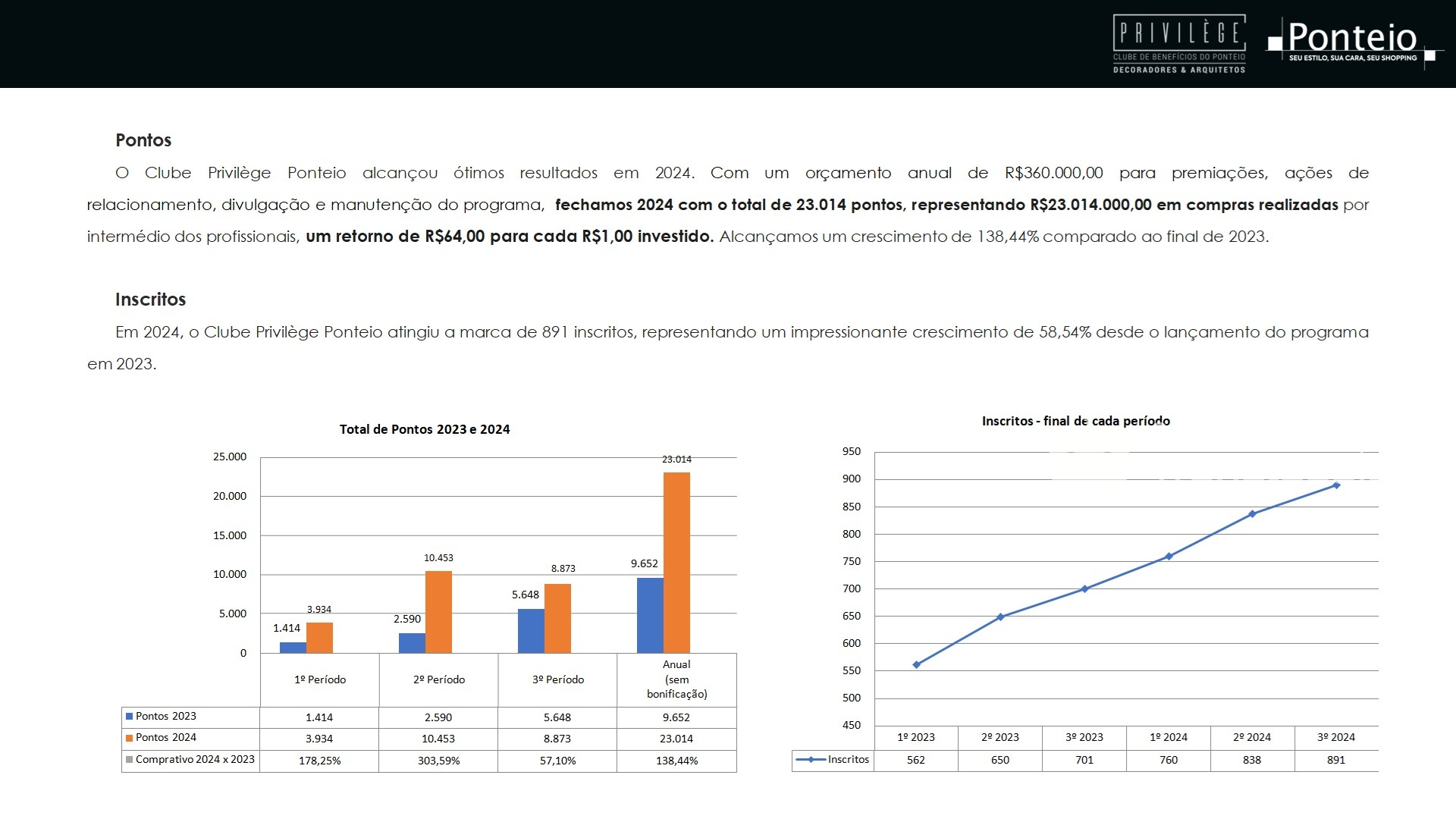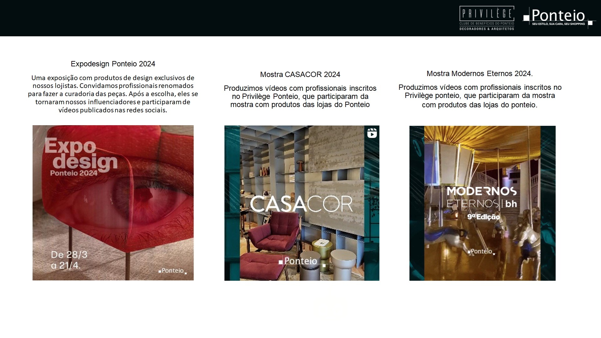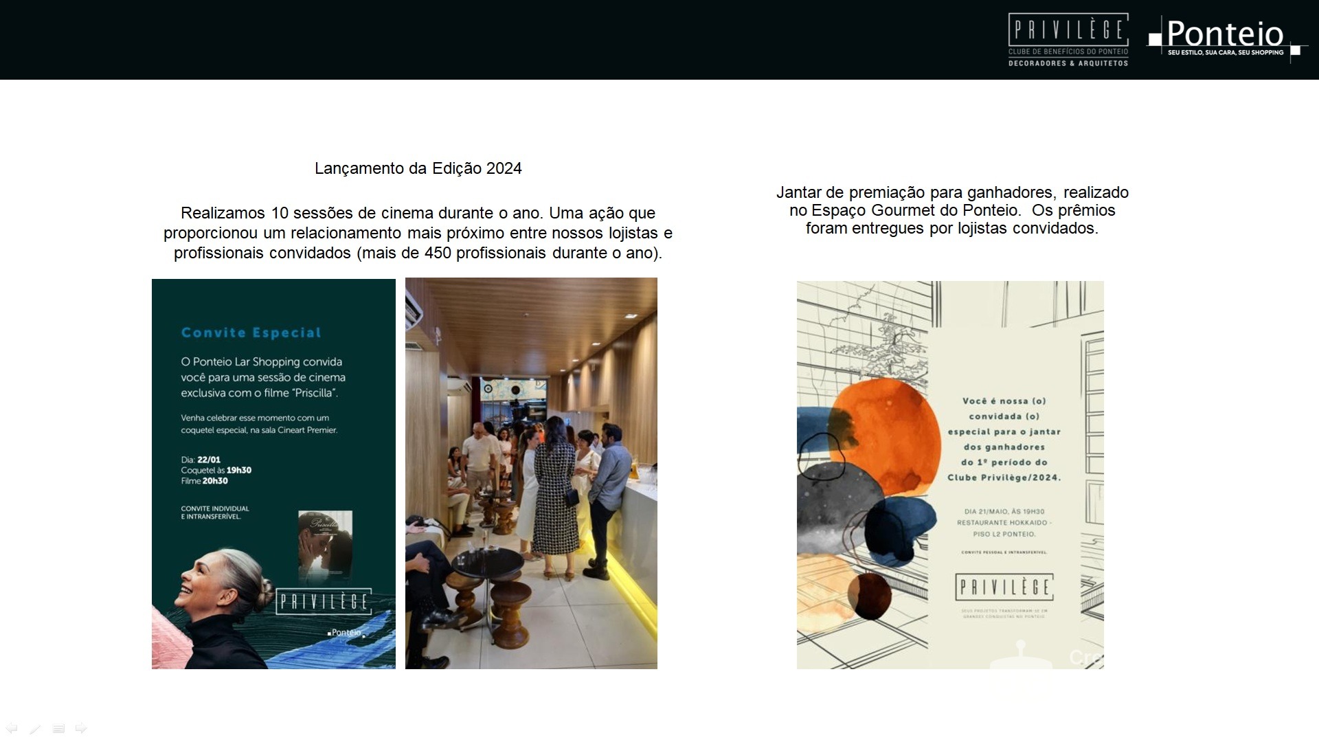 Dado ao sucesso imediato em 2023, o Ponteio Lar Shopping deu continuidade a uma nova edição do Clube Privilège em 2024. Ao converter as compras realizadas pelos profissionais e seus clientes em pontos, eles concorrem a vales-compra no shopping e desfrutam de vários benefícios, como, descontos em lojas, isenção de estacionamento e participação em eventos exclusivos: exposições de design, produção de conteúdo em redes sociais, sessões de cinema com coquetel e jantares de premiação.