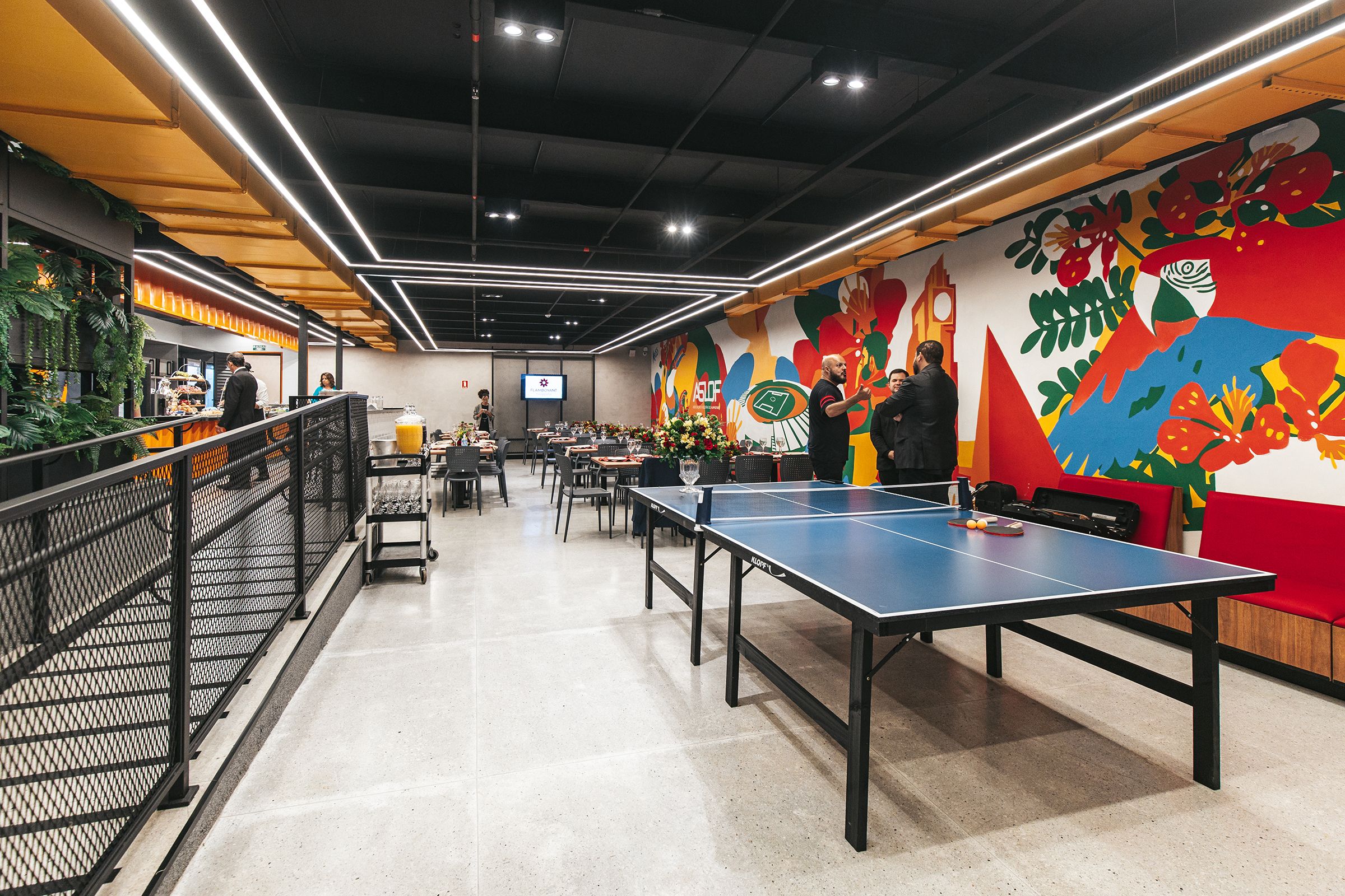 O Flamboyant Shopping, em parceria com a ASLOF (Associação de lojistas do Flamboyant Shopping), inaugurou em 16 de dezembro, no Piso 3, um novo espaço de convivência e refeitório dedicado a colaboradores e lojistas. Projetado para promover bem-estar e integração, o ambiente oferece conforto com sofás e áreas de descanso, opções de lazer como sinuca e pingue-pongue, um refeitório para até 100 pessoas e espaços privativos para reuniões e feedbacks. A iniciativa sublinha a importância de ambientes de descompressão no trabalho, que comprovadamente reduzem o estresse, aumentam a produtividade e melhoram o clima organizacional. Este projeto reflete o compromisso do Flamboyant Shopping e da ASLOF em valorizar as pessoas que fazem o empreendimento acontecer, proporcionando um local acolhedor que eleva a qualidade de vida e fortalece os laços entre a comunidade do shopping.
