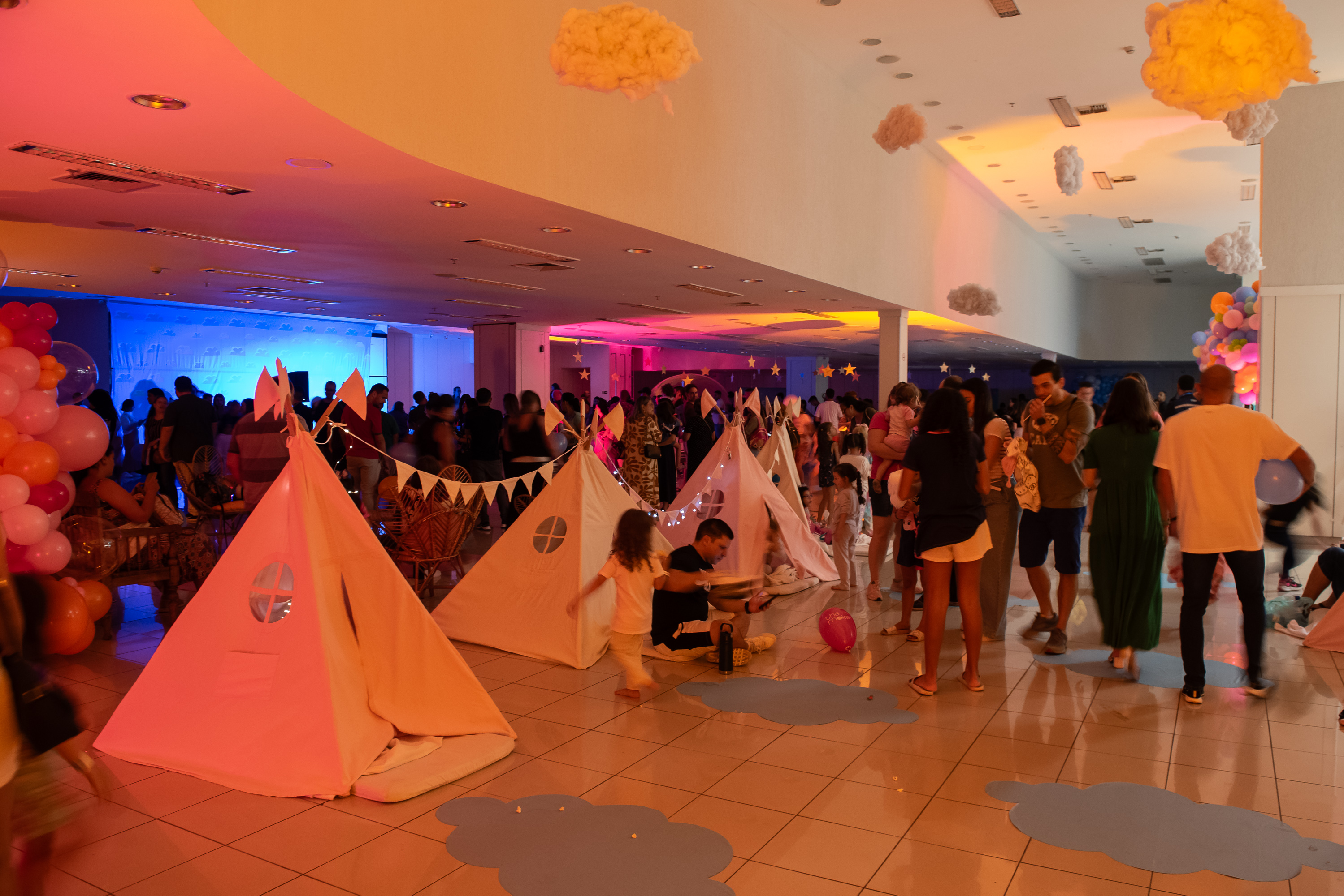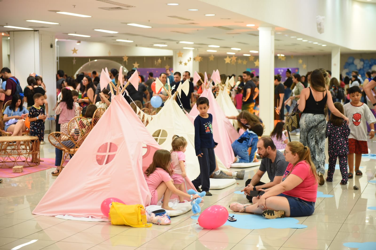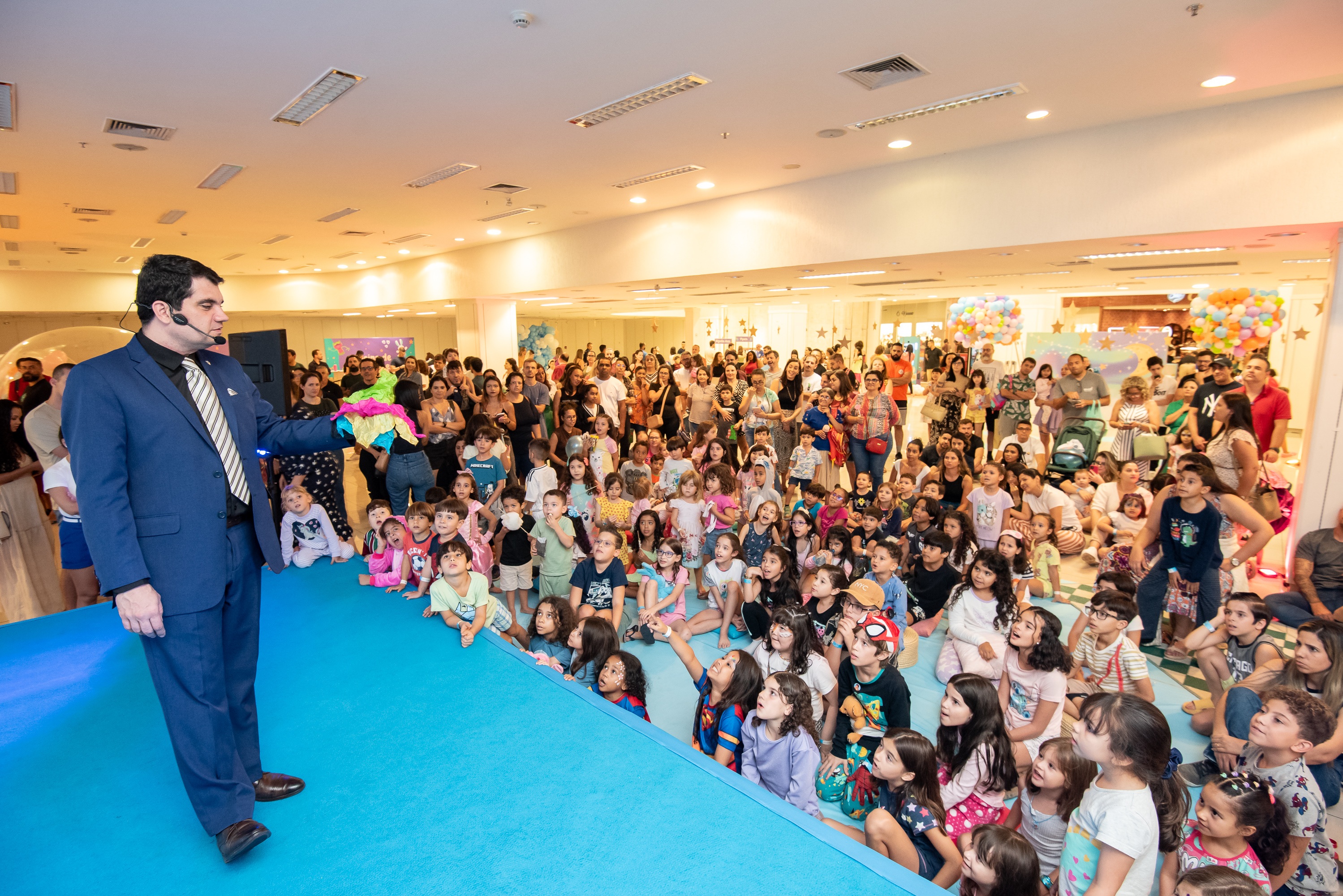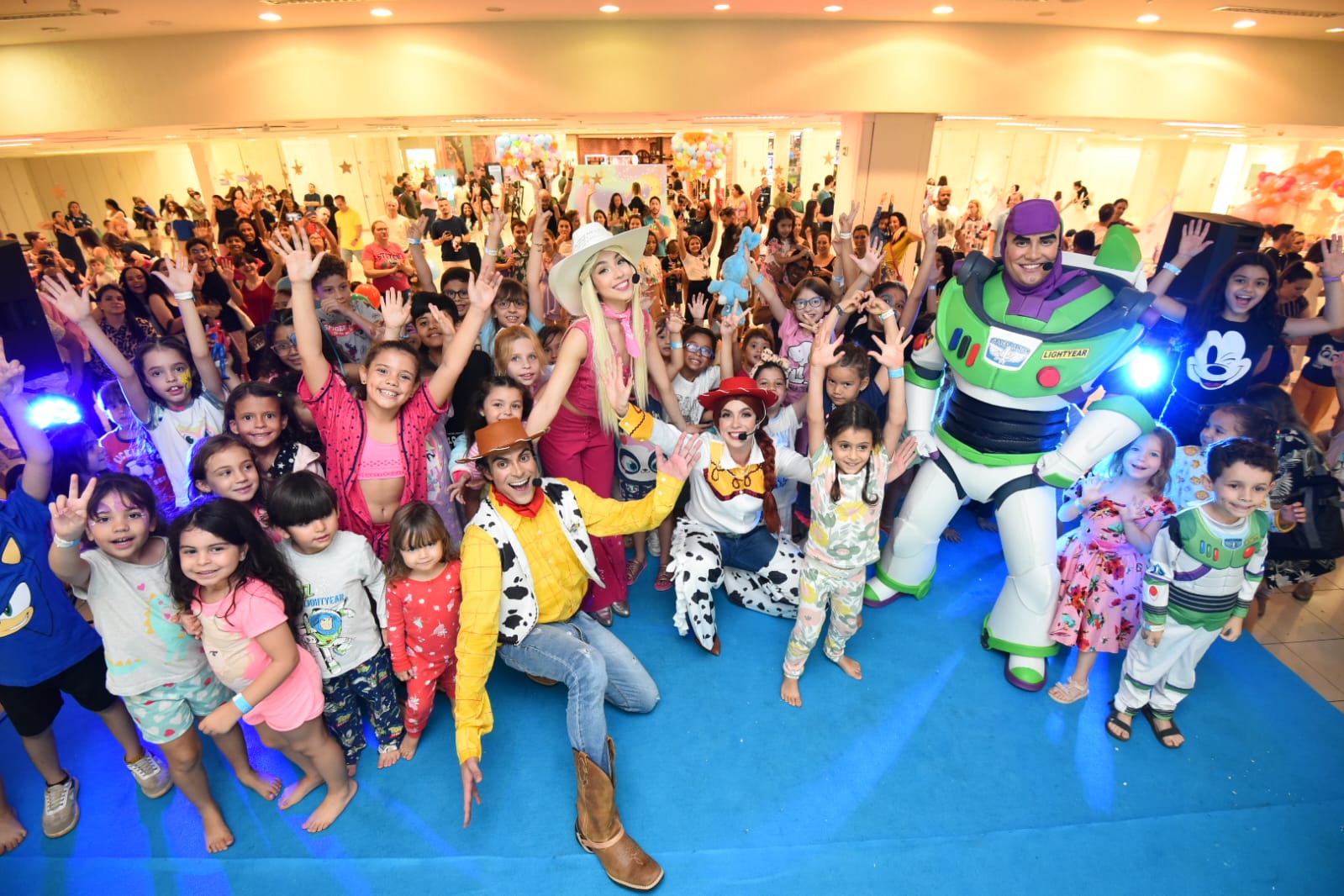A "Festa do Pijama" recriou o aconchego das noites de infância com cabaninhas iluminadas, almofadas macias e um céu de estrelas no teto. Das 17h às 21h, o Trio da Bagunça comandou gincanas enquanto o mágico Carlos Steiner arrancava suspiros de espanto. O grupo Oja Laió deu vida aos brinquedos da Toy Story, criando uma conexão perfeita com o tema.
