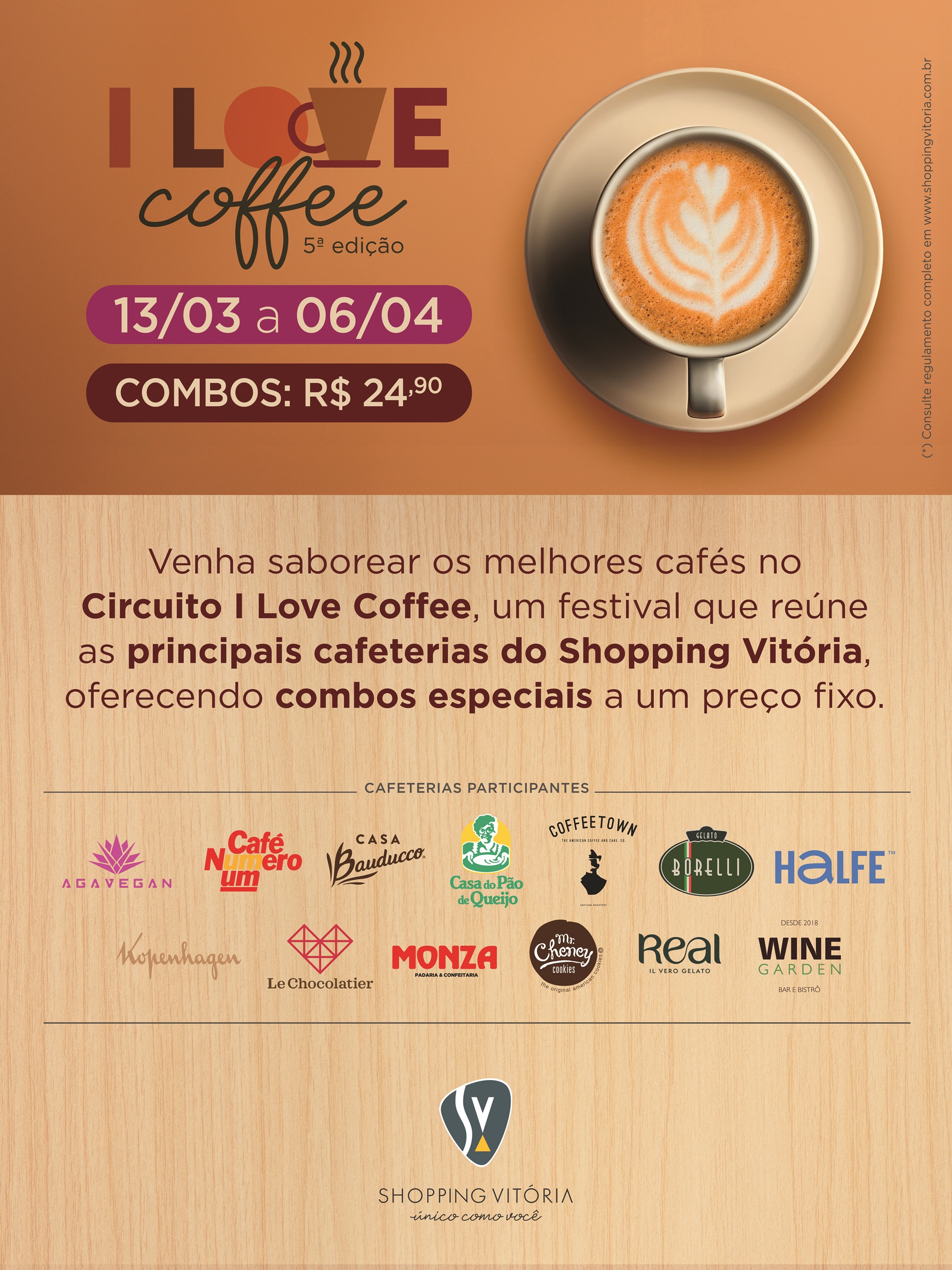 Sabe aquele cheirinho de café que te abraça? Ou a mordida perfeita em um hambúrguer suculento? No Shopping Vitória, essas sensações ganharam um nome: Circuito Gastronômico I LOVE. Mais que uma campanha, o I LOVE é uma celebração dos sabores que unem pessoas e criam memórias. A cada edição, convidamos nossos clientes para uma jornada de descobertas, com combos exclusivos e preços irresistíveis. I Love Coffee, I Love Burger, I Love Gelato, I Love Pizza… Cada circuito é um novo capítulo dessa história de afeto e sabor. O projeto nasceu do desejo de criar conexões reais com o público e gerar resultados concretos para os lojistas. Planejado estrategicamente, o I LOVE impulsiona vendas em períodos de baixa demanda e fortalece o mix gastronômico do shopping. Uma experiência imperdível, tanto para quem consome quanto para quem vende e que já se consolidou como tradição no nosso calendário de marketing.