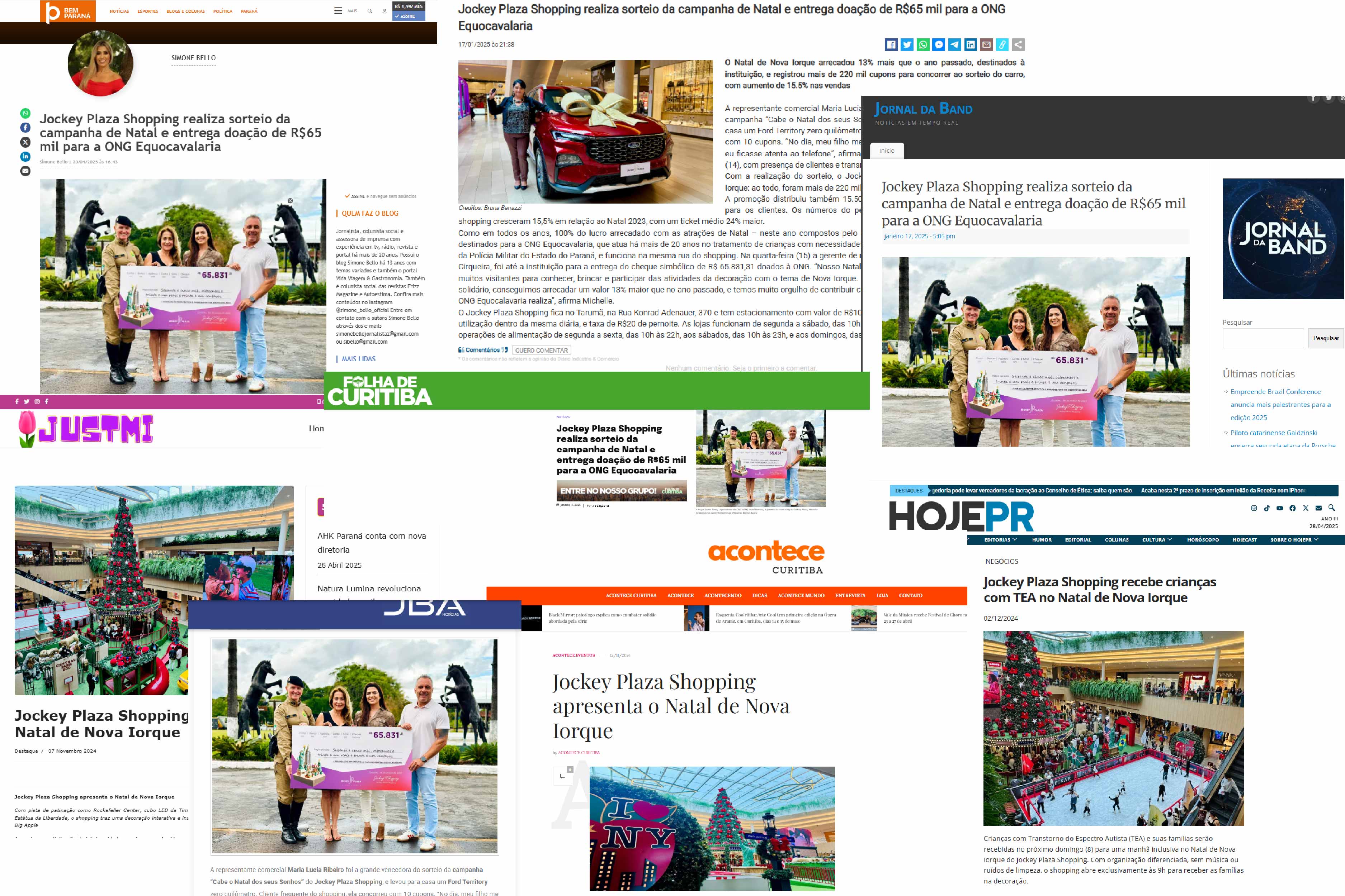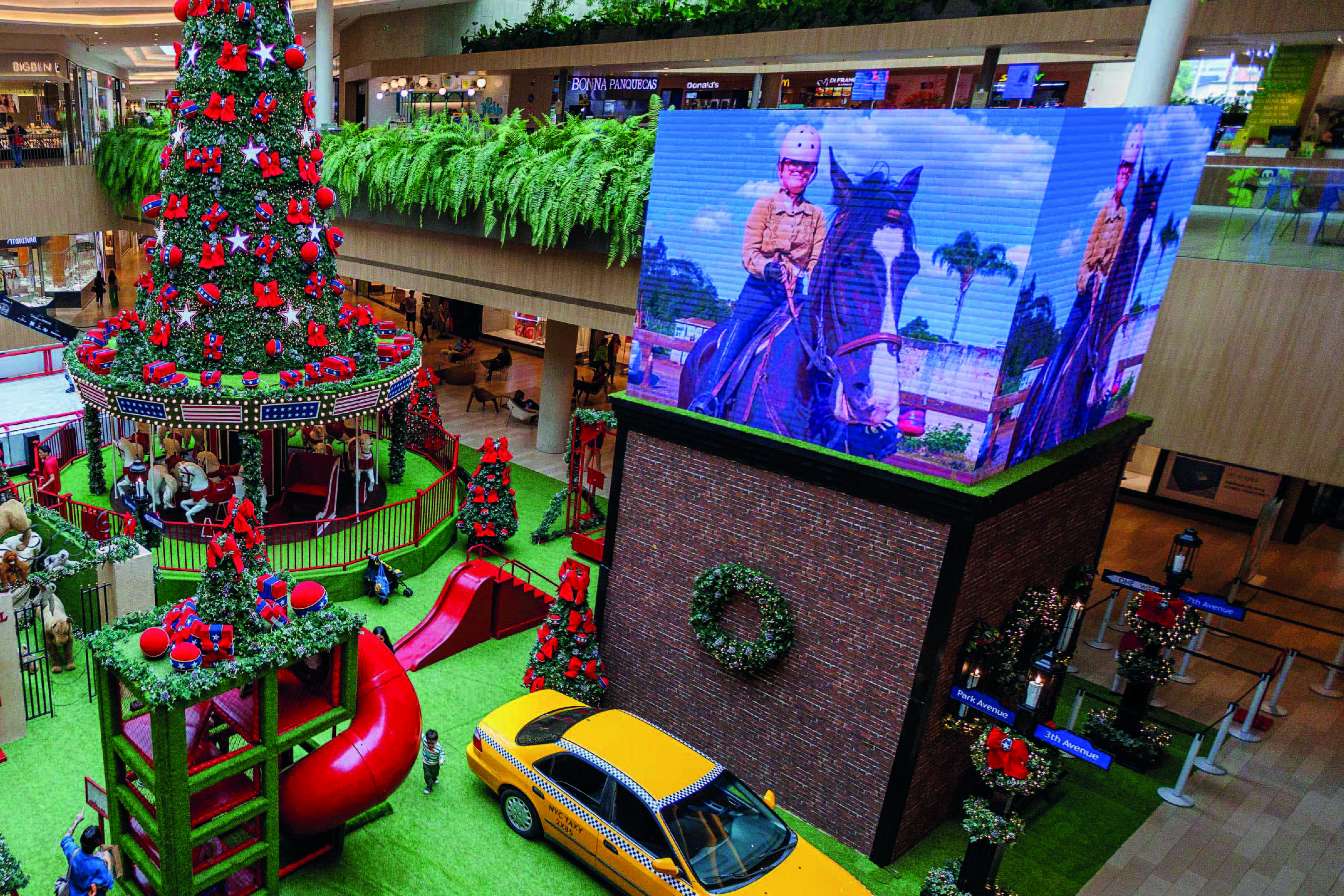 Com temas sempre inéditos, o Natal do Jockey Plaza é reconhecido por sua originalidade e viés social. A cada ano, novas atrações solidárias arrecadam valores à ONG que é apoiada pelo shopping há 6 natais. Em 2024, inspirado pela grandiosidade e magia da Big Apple, o Jockey criou o “Natal de Nova Iorque”, uma experiência imersiva que trouxe ao público uma decoração inspirada na cidade americana. Com pista de patinação no gelo como no Rockefeller Center, zoo do Central Park e até um táxi novaiorquino, o projeto ofereceu uma decoração brincante e solidária. Neste cenário, uma ativação inédita no Brasil permitiu ao público apoiar uma doação e enviar vídeos para exibição num cubo LED: o Jockey Square. A ação foi um sucesso, clientes participaram homenageando alguém ou exibindo suas próprias imagens em tamanho gigante no shopping. As ações sociais da campanha arrecadaram R$ 65mil para a ONG reafirmando o Jockey como a maior ação solidária nos shoppings de Curitiba.
