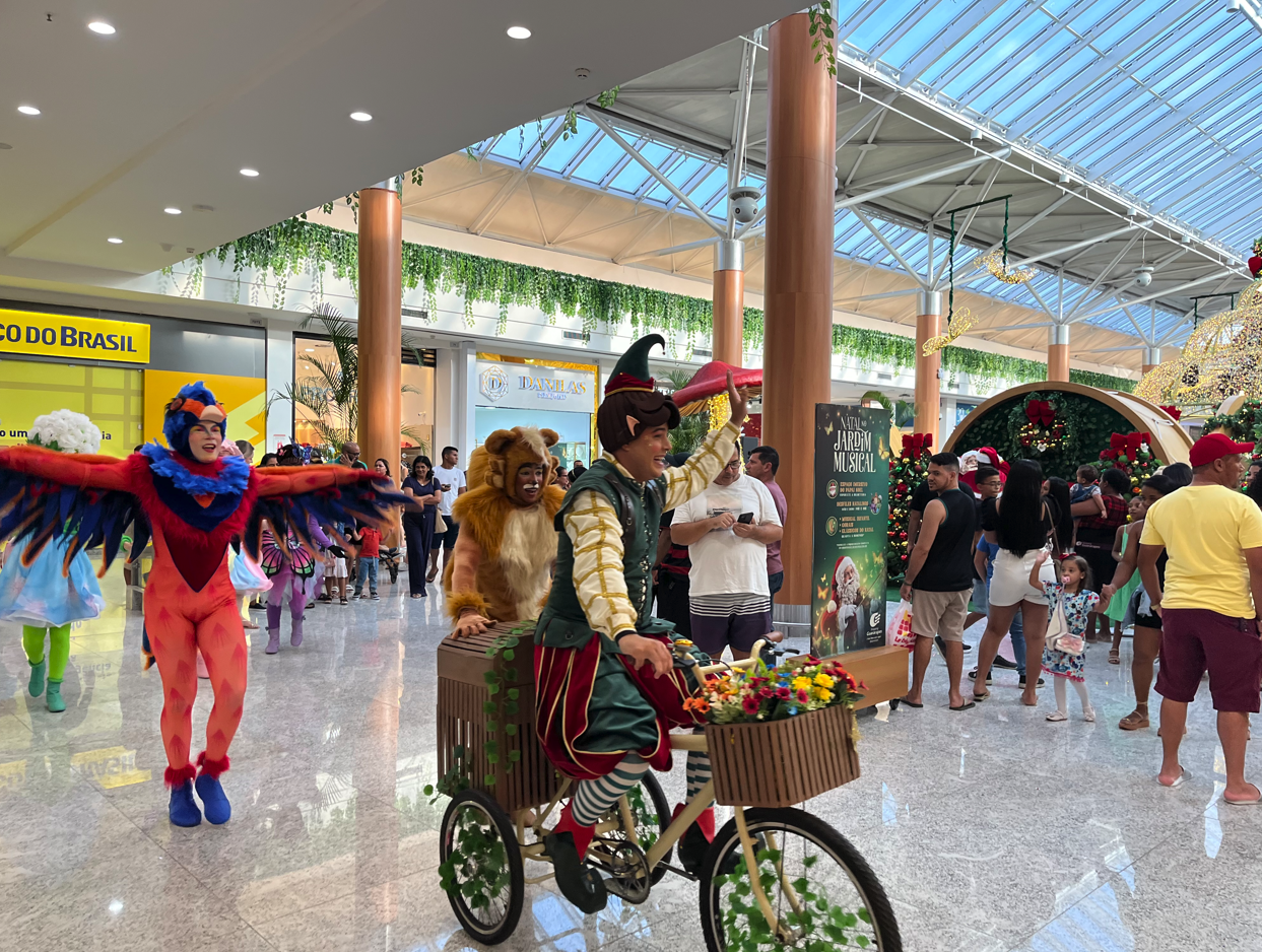 Com o objetivo de proporcionar maior bem-estar ao cliente, o Shopping Guararapes vem realizando uma série de benfeitorias. Uma delas é o paisagismo no mall, com o aumento significativo da presença do verde pelos corredores do Shopping. Neste contexto, no Natal de 2024, criamos uma decoração em sinergia com o objetivo macro, trazendo a temática de jardim e ofertando o aconchego e bem estar ao nosso cliente. Aliado a isso, buscando trazer entretenimento, que é uma marca dos nossos natais, incluímos a música para proporcionar uma programação com atrações artísticas que tornaria nossa decoração ainda mais lúdica, indo além da contemplação. Nosso Natal contemplou também outras ações, com destaque para as ações de inclusão: brinquedos gratuitos com acessibilidade e sessão azul do Papai Noel para crianças com Transtorno do Espectro Autista (TEA). Além disso, com objetivo de ofertar maior entretenimento, realizamos o Espaço Imersivo do Papai Noel e realizamos também ações de cunho social.