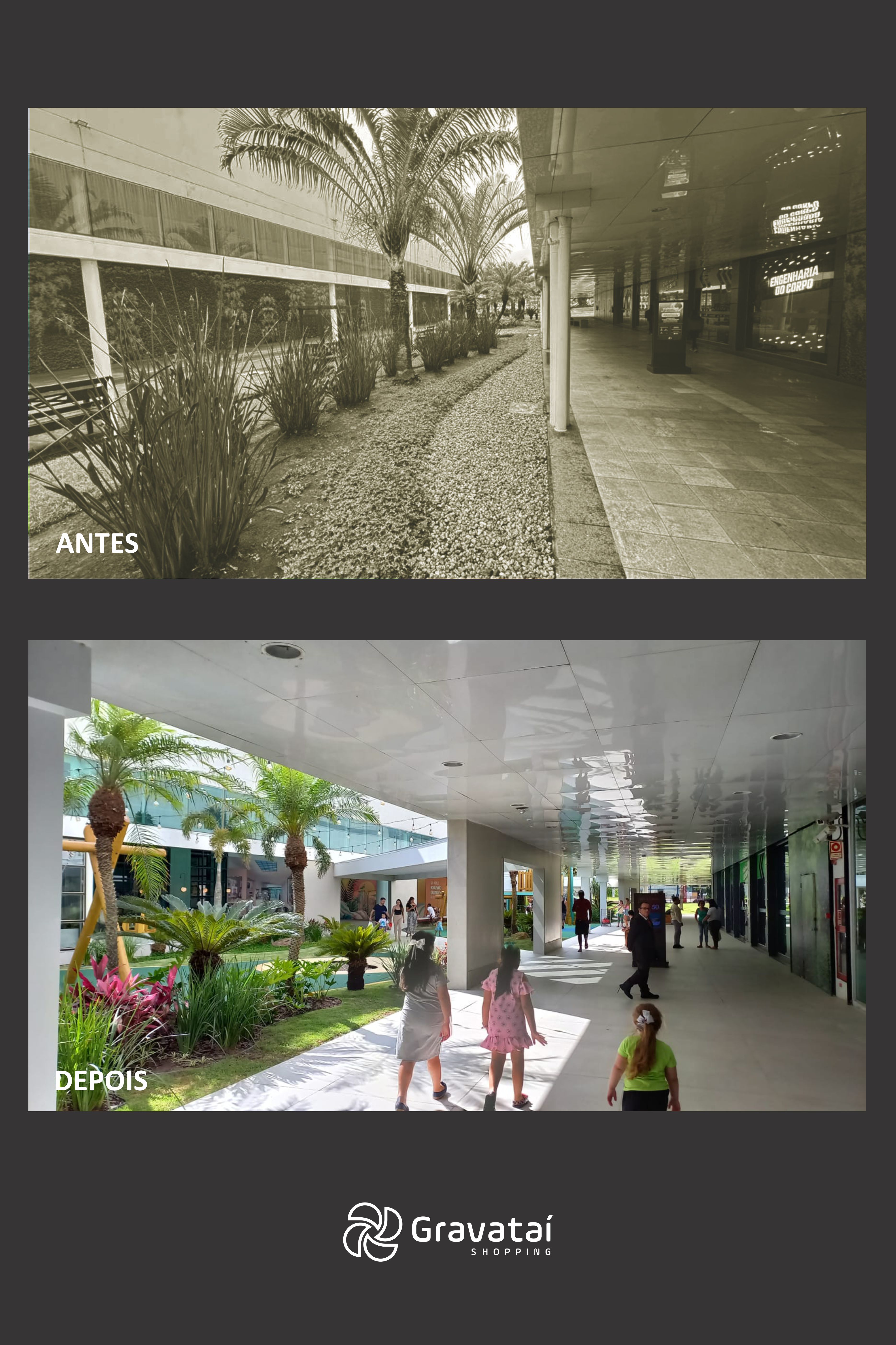 Em 2024, ao completar 11 anos, o Gravataí Shopping iniciou uma transformação estratégica que mudou completamente a dinâmica de uma de suas principais áreas. O antigo boulevard, originalmente projetado como um espaço aberto e arborizado com pequenas operações de alimentação, apresentava baixa atratividade e ocupação limitada, devido às metragens reduzidas dos pontos comerciais. Com a entrada da AD Shopping na gestão do empreendimento em julho de 2023, foi identificada a necessidade de revitalizar esse espaço. A solução foi ousada: transformar o local em um verdadeiro Boulevard Gastronômico, com estrutura ampliada, foco em lazer familiar e experiências ao ar livre. O projeto reposicionou o empreendimento, criando um ambiente mais funcional, atrativo e alinhado com os novos hábitos de consumo e convivência.