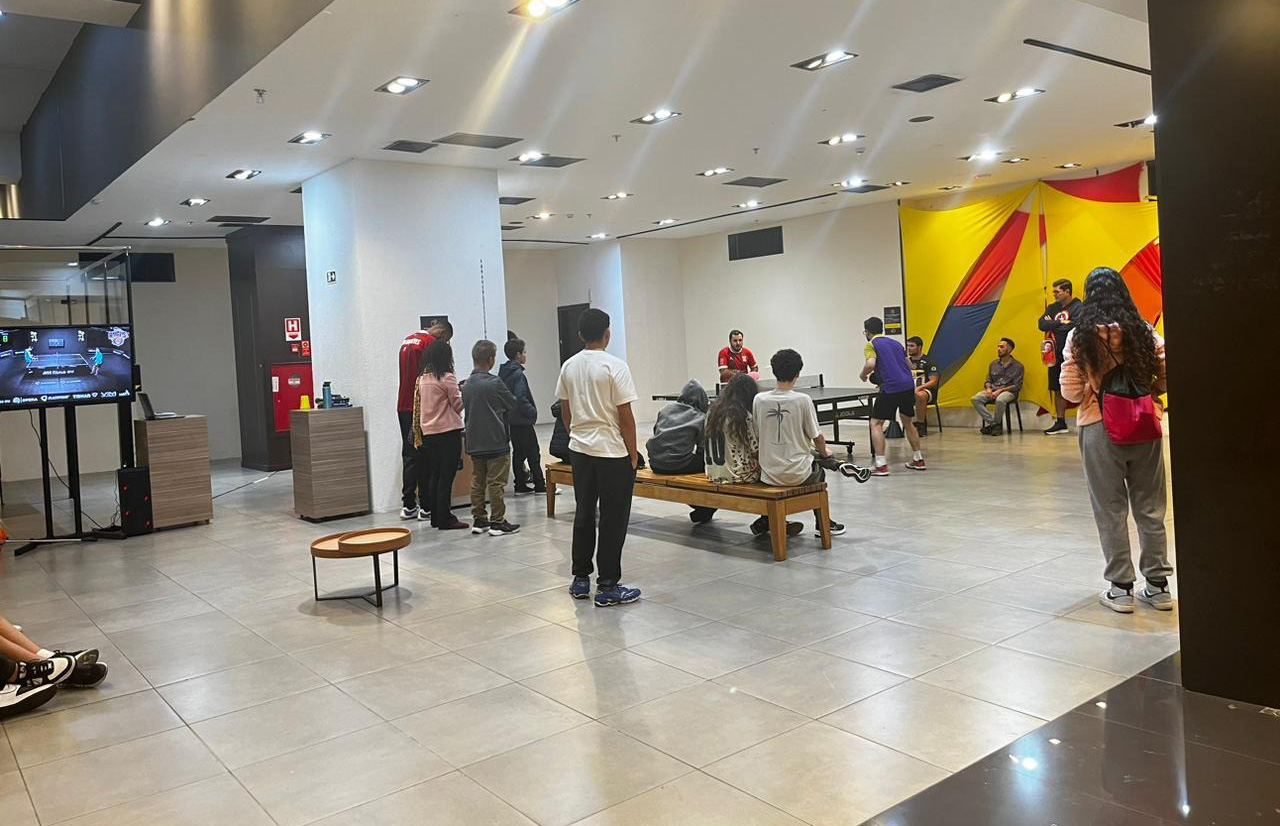 Em uma iniciativa inédita na região do ABC, o Shopping Praça da Moça transformou seu espaço cultural em uma verdadeira arena esportiva com o projeto Ping Pong Experience. O evento gratuito convidou o público a vivenciar o universo do tênis de mesa de forma totalmente imersiva e interativa, com mesas profissionais, realidade virtual e o inusitado robô pong – um lançador automático de bolinhas usado em treinos técnicos de alto desempenho.