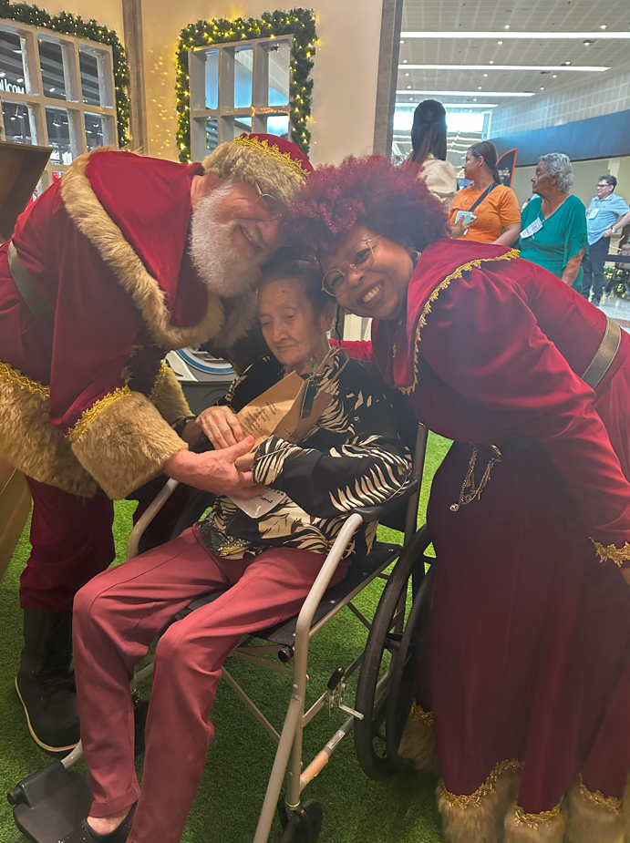 Quinze idosos foram recebidos com exclusividade para assistir a um filme no cinema, visitar a decoração natalina e realizar o tão sonhado encontro com o papai Noel. O passeio seguiu com almoço preparado e adaptado às suas restrições alimentares e, ao final, cada um recebeu um voucher presente, fruto de uma vaquinha entre colaboradores, para comprar roupas e itens pessoais. O dia terminou com um café da tarde especial. Um gesto simples, mas com poder de resgatar memórias, sorrisos e pertencimento.
