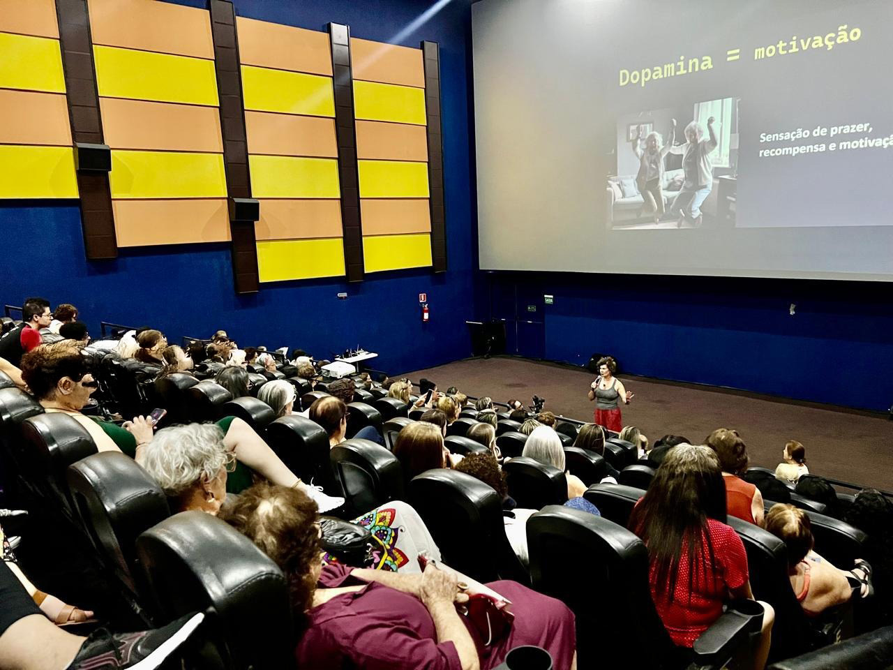 Com o intuito de aprofundar esse tema sob uma perspectiva científica e acessível, a iniciativa contou com a participação da docente Selma Souto — pedagoga com especialização em Fronteiras da Neurociência pelo Hospital Albert Einstein e em Neurociências e Comportamento pela PUC. A especialista conduziu um bate-papo esclarecedor sobre os efeitos dos hormônios: Endorfina, serotonina, dopamina e ocitocina no organismo feminino, destacando como esses neurotransmissores, estimulados durante a prática de atividades físicas, desempenham um papel fundamental na regulação do humor e na redução do estresse.