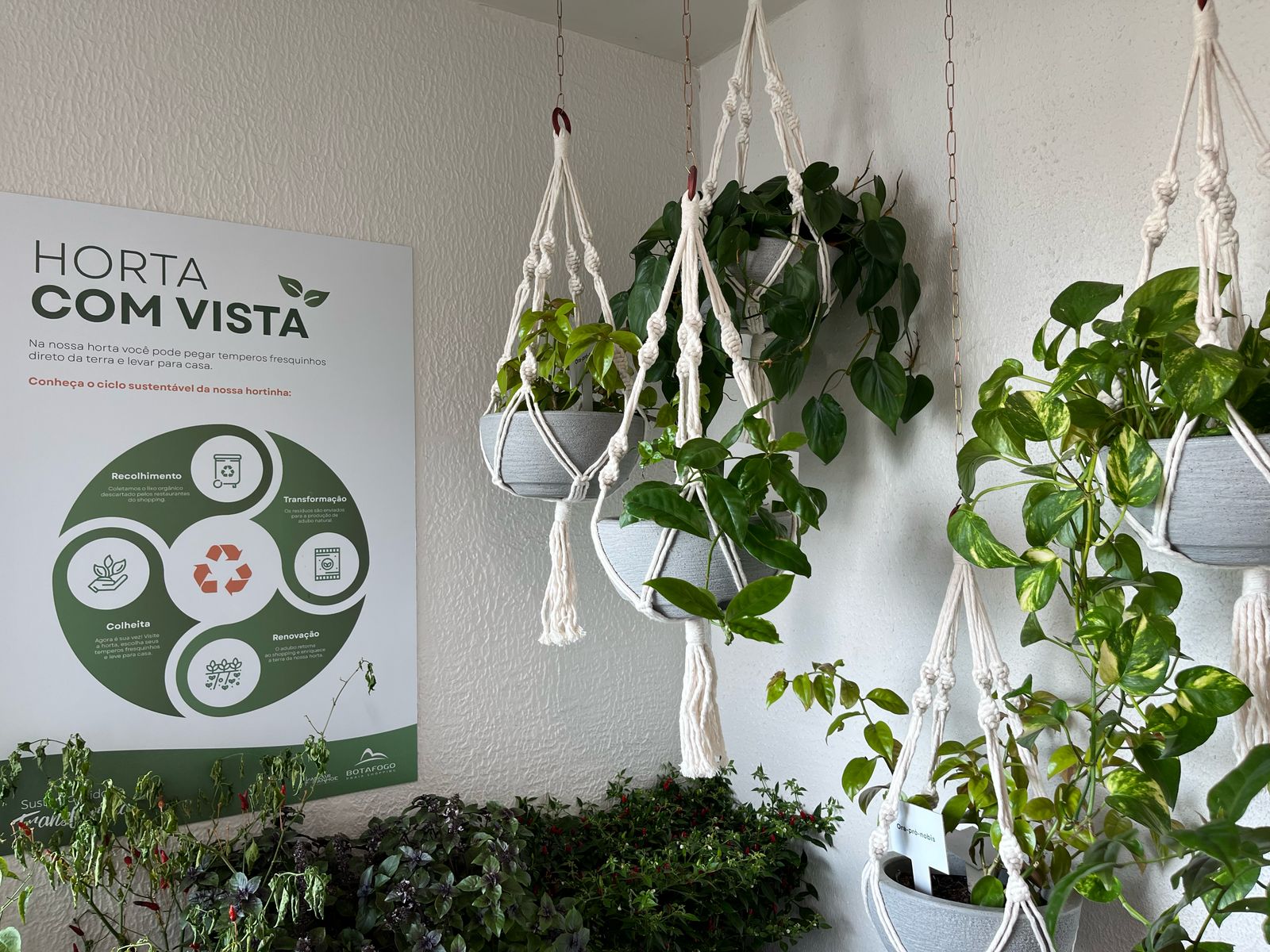 No Botafogo Praia Shopping, sustentabilidade e conexão com a comunidade são pilares que cultivamos com dedicação. Com base nesses valores, criamos o projeto “Hortas com Vista”, que transforma resíduos orgânicos em vida. A partir do correto tratamento do lixo produzido internamente, geramos terra de compostagem que dá origem a hortas repletas de temperos frescos. Mais do que jardinagem, é um ciclo virtuoso onde o que seria descartado se transforma em alimento e consciência ambiental. As hortas estão localizadas em pontos estratégicos do shopping, com iluminação natural e vista para o Pão de Açúcar, convidando os clientes a se conectarem com o espaço de forma afetiva e sustentável. Esta iniciativa soma-se a outras ações ambientais e reforça nosso papel como referência em práticas sustentáveis na região.