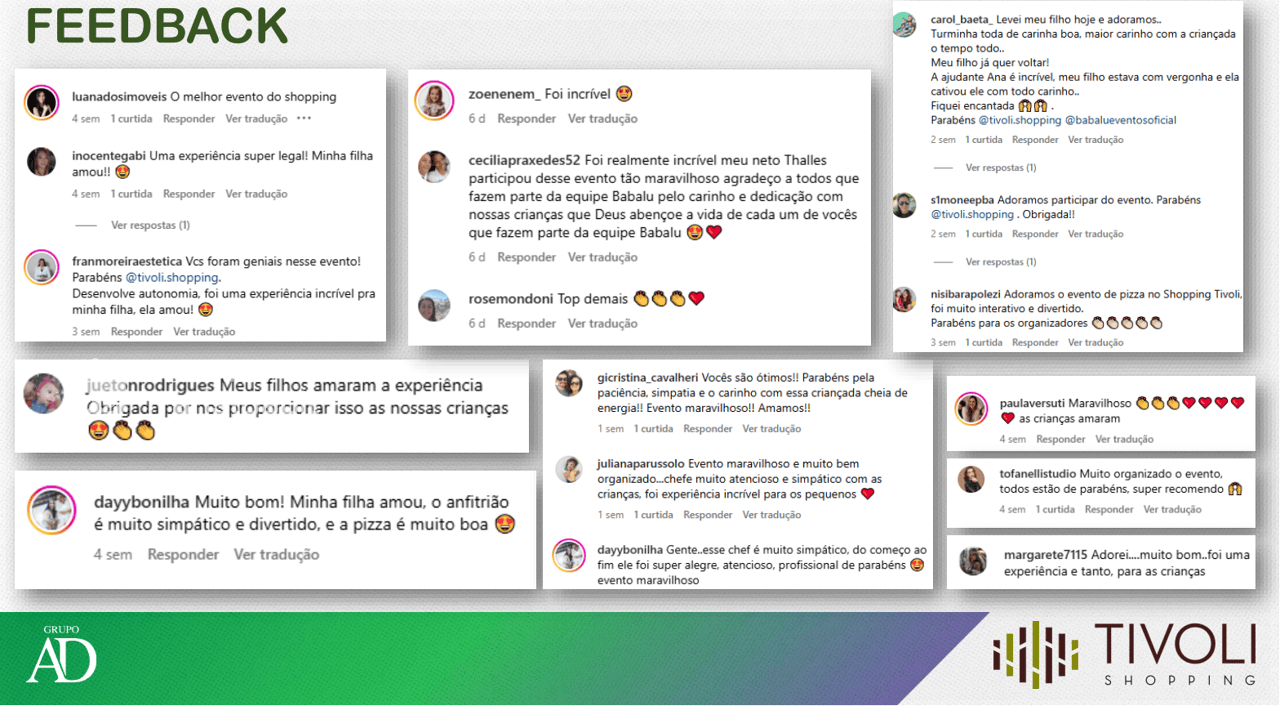Com apoio de um ator caracterizado como pizzaiolo, que interagia e encantava as crianças, o evento incentivou a autonomia, criatividade e consciência alimentar. A ação atraiu escolas, gerou engajamento nas redes sociais, contou com parcerias como a Pizza Hut e recebeu elogios emocionados de pais e responsáveis.